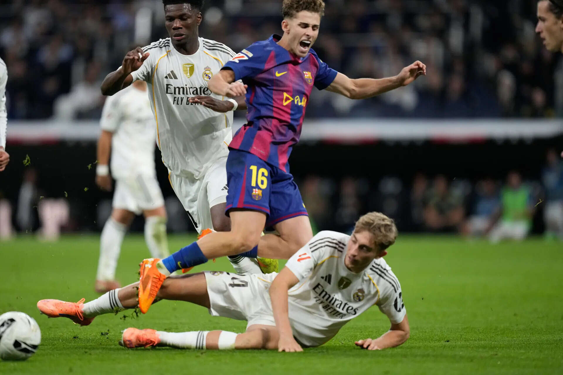 Real Madrid and Barcelona players get into a scuffle after the full time whistle at the Santiago Bernabeu (AP Photo/Manu Fernandez) Real Madrid defeated Barcelona 2-1 at the Santiago Bernabéu on Sunday, moving five points clear at the top of La Liga. Jude Bellingham scored the decisive goal in the first half, helping Xabi Alonso’s […]